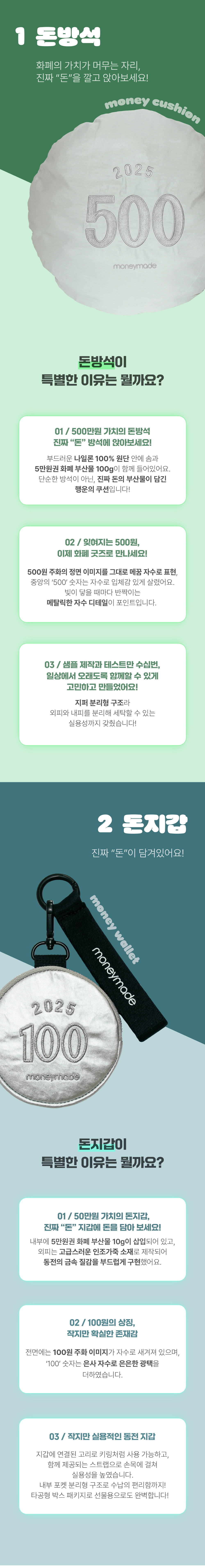 | 구성 | 돈방석 : 단품 돈지갑 : 돈지갑 + 스트랩 |