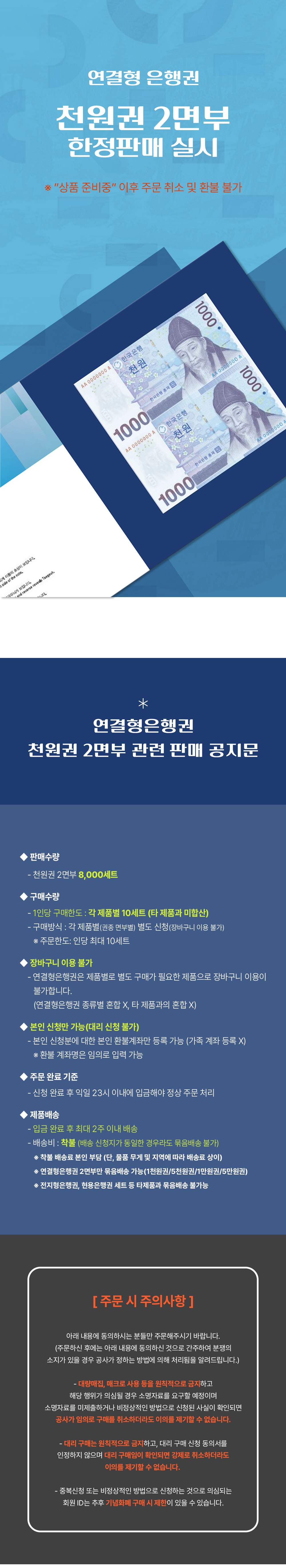 1천원권 2면부 연결형은행권(2월 2일 오전 10시 판매오픈)